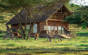 The sanctuary’s hillside location offers panoramic vistas of Africa’s highest peak on clear days.